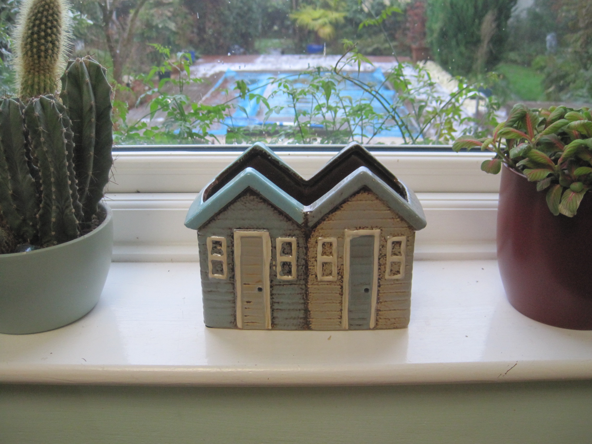 This hand-painted ceramic Beach Hut windowsill planter adds a charming, coastal touch to any space.