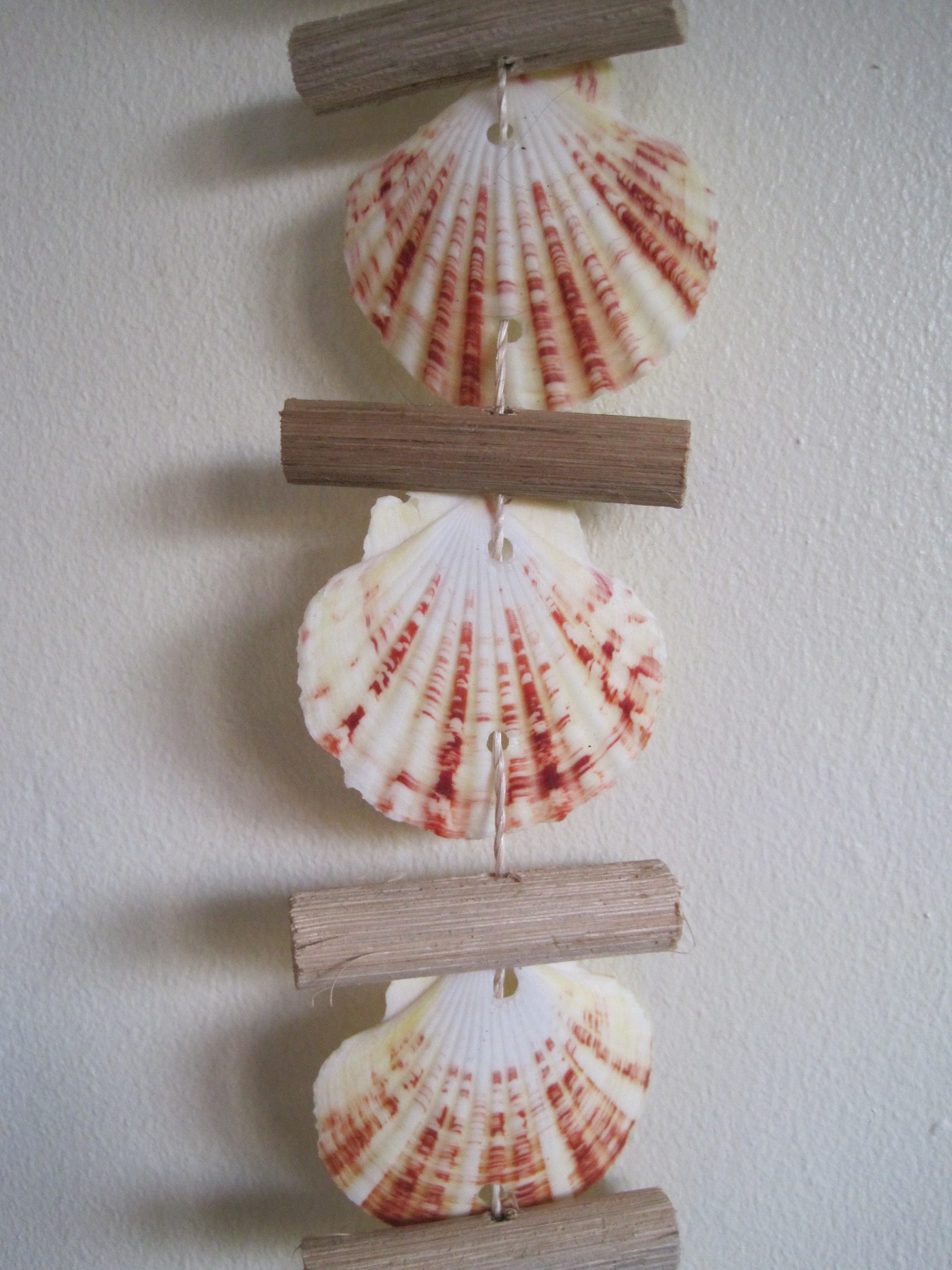 Add a touch of coastal beauty to your space with this charming handmade scallop shell mobile.